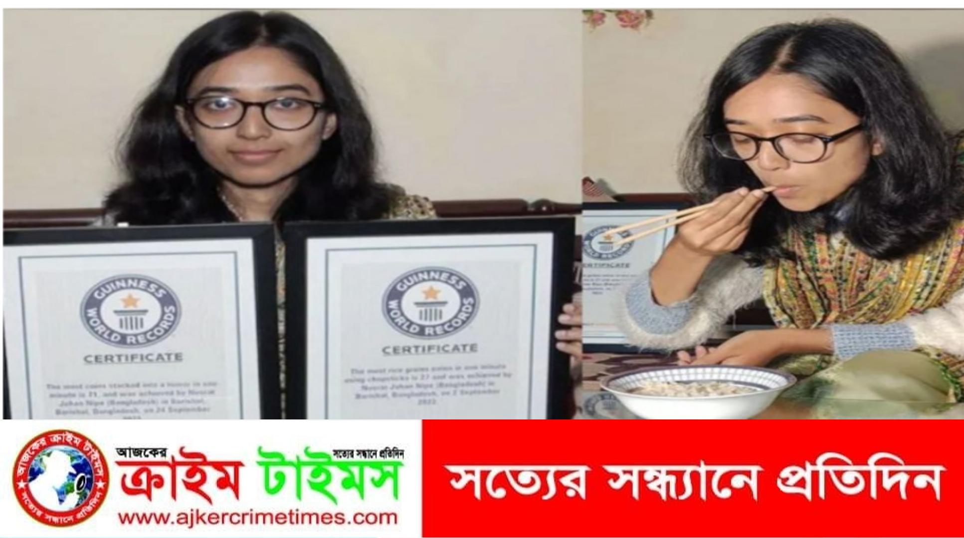 নিজস্ব প্রতিবেদক :: গিনেস বুক অফ ওয়ার্ল্ড রেকর্ডসে নাম লেখিয়ে বরিশালের তরুণীর রেকর্ড।