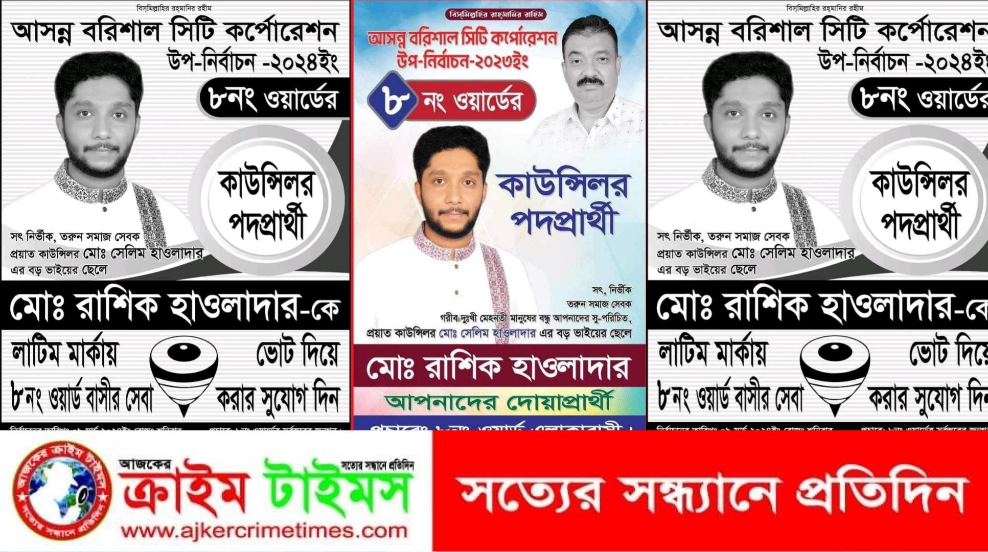 বরিশাল সিটি করপোরেশনের (বিসিসি) ৮ নম্বর ওয়ার্ডে উপ-নির্বাচনে লাটিম প্রতীক নিয়ে মো: রাশিক হাওলাদার বিপুল ভোটে জয়লাভ করেছে।