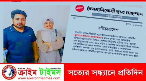 নিজস্ব প্রতিবেদক :: মাদক সেবনের ভিডিও ভাইরাল, বৈষম্যবিরোধী নেত্রী বহিষ্কার মাদক সেবন ও অসামাজিক কার্যকলাপের অভিযোগে বৈষম্যবিরোধী ছাত্র আন্দোলন চট্টগ্রাম মহানগর কমিটির মুখপাত্র ফাতেমা খানম লিজাকে সংগঠন থেকে বহিষ্কার করা…
