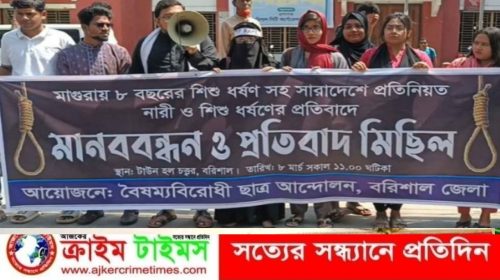 নিজস্ব প্রতিবেদক :: মাগুরায় ৮ বছরের শিশু ধ.র্ষ.নের প্রতিবাদে বরিশালে মানবব.ন্ধন। মাগুরায় ৮ বছরের শিশু ধর্ষনসহ সারাদেশে নারী ও শিশু ধর্ষণের প্রতিবাদে মানববন্ধন ও প্রতিবাদ মিছিল হয়েছে বরিশালে। শনিবার (৮…