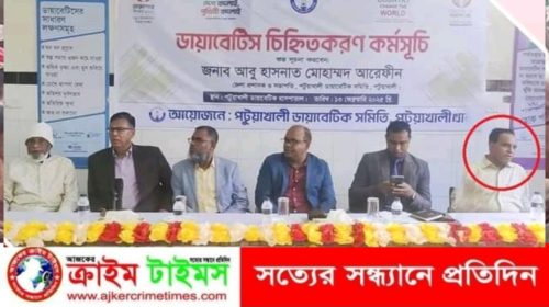 নিউজ ডেস্ক :: পটুয়াখালীতে আ.লীগ নেতাকে পাশে বসিয়ে জেলা প্রশাসকের ডায়াবেটিস চি.হ্নি.তকরণ সভা। পটুয়াখালীতে তারুণ্য উৎসব উপলক্ষ্যে ডায়াবেটিক সমিতির উদ্যোগে ডায়াবেটিস চিহ্নিতকরণ কর্মসূচিতে আওয়ামী লীগের এক নেতার উপস্থিতি নিয়ে এলাকায়…