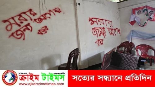 নিউজ ডেস্ক :: বিএনপির কার্যালয় ভা*ঙচুর, দেয়ালে লিখল ম*রার জন্য অপেক্ষা কর নরসিংদীর রায়পুরায় ইউনিয়ন বিএনপি কার্যালয়ে ভাঙচুর করে আগুন দিয়েছে দুর্বৃত্তরা। এ সময় দেয়ালে লিখন দেখতে পাওয়া যায় ‘মরার…