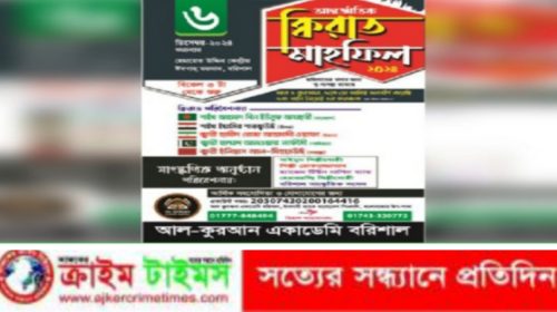 নিজস্ব প্রতিবেদক :: বরিশালে আন্তর্জাতিক ক্বিরাত মাহফিল অনুষ্ঠিত হবে আগামীকাল বিভিন্ন দেশের খ্যাতিমান ক্বারীদের নিয়ে বরিশালে অনুষ্ঠিত হতে যাচ্ছে আন্তর্জাতিক ক্বিরাত মাহফিল। ৬ ডিসেম্বর শুক্রবার বিকেল তিনটায় বরিশাল হেমায়েত উদ্দীন…