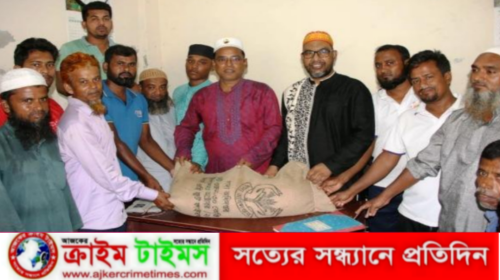 বরিশালে সংবাদপত্র হকার্স ইউনিয়নের সদস্যদের মাঝে চাল বিতরণ