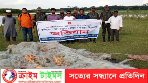 বরিশালে মা ইলিশ সংরক্ষণে প্রশাসনের অভিযান : ২০ হাজার মিটার অবৈধ জাল ধ্বংস, ২ মণ মাছ জব্দ