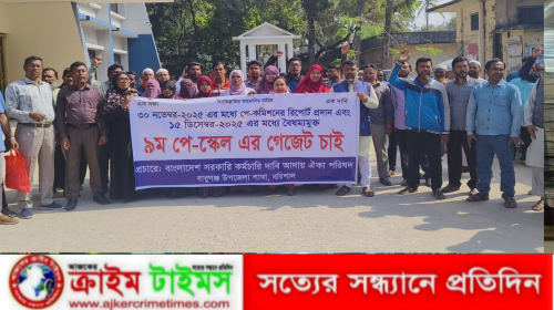 বেতন বৈষম্য দূরীকরণ ও ৯ম পে-স্কেল বাস্তবায়নের দাবিতে বাবুগঞ্জে মানববন্ধন